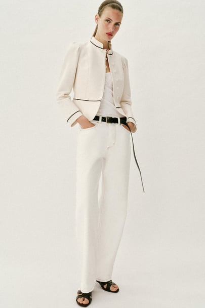 TAILLIERTER BLAZER MIT KONTRASTPASPELN