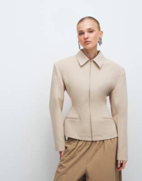 ASOS DESIGN – Elegante, figurbetonte Jacke in Kamelbraun